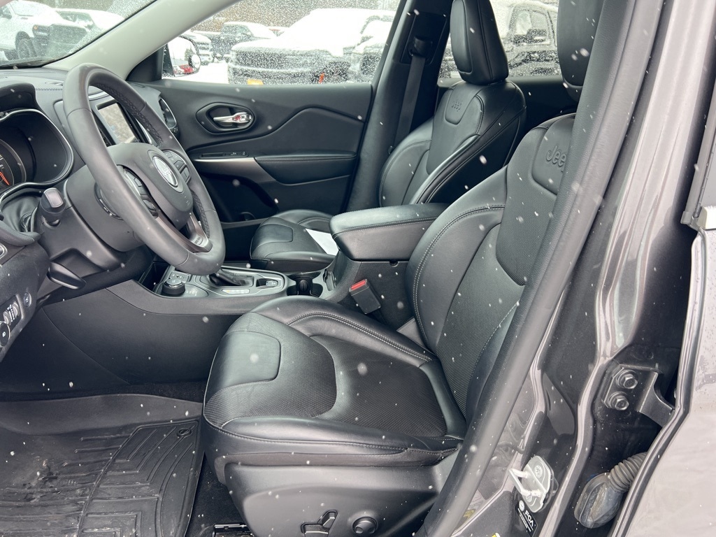 This Jeep Cherokee is well equipped and includes these key features and benefits, Local Trade, Certified 7yr, 100,000 mile warranty, road side assistance, car rental allowance, Heated Seats, Blind-Spot Monitors, Apple CarPlay, Android Auto, Uconnect 8.4 Inch Radio w Bluetooth, Heated Steering Wheel, Remote Start, Trailer Hitch and Wiring/ Tow Package, 17" x 7.0" Painted Aluminum Wheels, Power Liftgate, Roof rack: rails only.